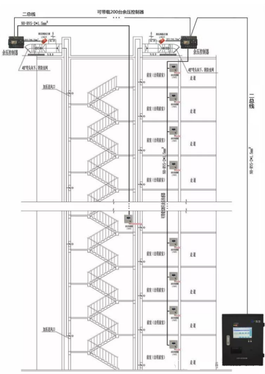 余壓監(jiān)控系統(tǒng)的目的為了確保分散通道的余壓在火災產生時可以處于有用的受控狀況,既能阻撓煙氣的擴散,又能使逃生者比較輕松翻開防火門逃生,保護人員安全分散。