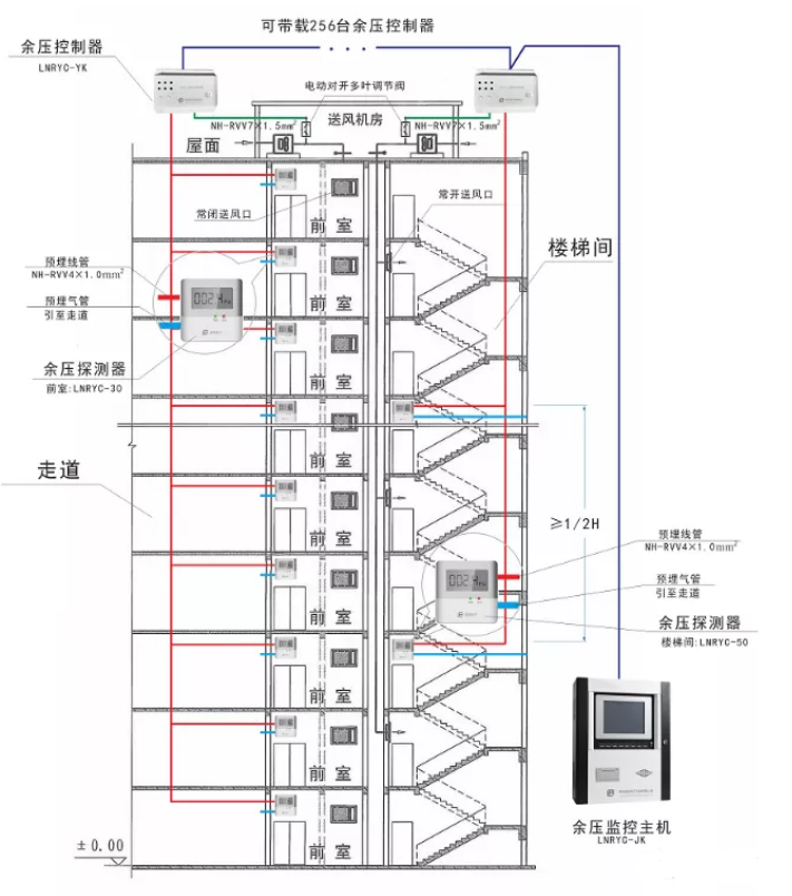 目的:是保持樓梯間和前室的余壓值維持在國(guó)家標(biāo)準(zhǔn)范圍,阻擋有害煙氣進(jìn)入的同時(shí),確保防火門(mén)的正常開(kāi)啟,保證生命通道的暢通。