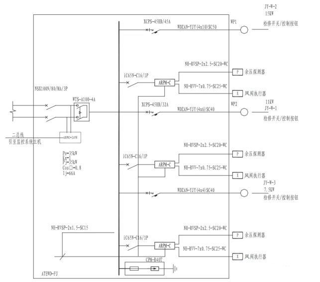 4)余壓深測器通過N-IYSP-2x2.5m2-SC20-C,沿樓板垂直敷設至風間控制箱。