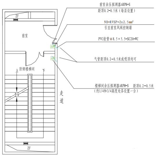 1)前室每層均設余壓探測器;