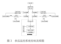 余壓監(jiān)控主機(jī)能接收余壓控制器反饋的所有實(shí)時(shí)信息,包括聲光報(bào)警信號(hào)、余壓探測(cè)器現(xiàn)場(chǎng)采集的數(shù)據(jù)信號(hào)、余壓控制器輸出的動(dòng)作信號(hào)、實(shí)時(shí)顯示并存儲(chǔ)各類故障報(bào)警信號(hào)等。余壓監(jiān)控主機(jī)安裝于消防控制室,并與火災(zāi)自動(dòng)報(bào)警系統(tǒng)主機(jī)進(jìn)行聯(lián)動(dòng)以及傳輸信息。余壓監(jiān)控系統(tǒng)控制流程圖〔如圖3所示)。