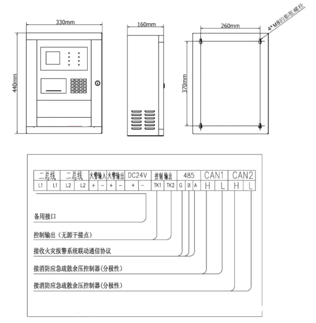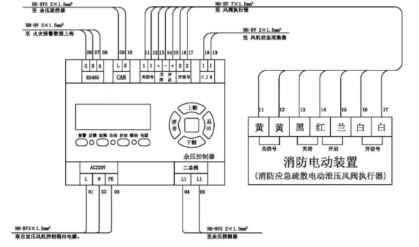 消防應(yīng)急疏散余壓控制器接線(xiàn)示意圖