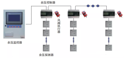 余壓監(jiān)控系統(tǒng)由余壓監(jiān)控器(主機)、余壓控制器、余壓探測器、風(fēng)閥執(zhí)行器、系統(tǒng)監(jiān)控專用軟件等部分或全部設(shè)備組成。以下為某品牌預(yù)壓檢測系統(tǒng)設(shè)備的系統(tǒng)結(jié)構(gòu)與應(yīng)用圖例,供參考。