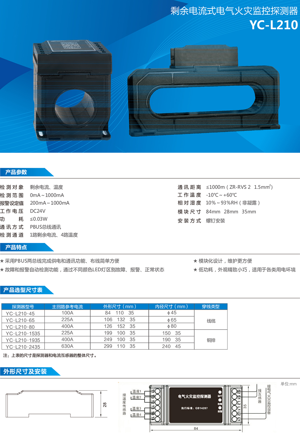 > YC-L210 剩余電流式火災(zāi)監(jiān)控探測器