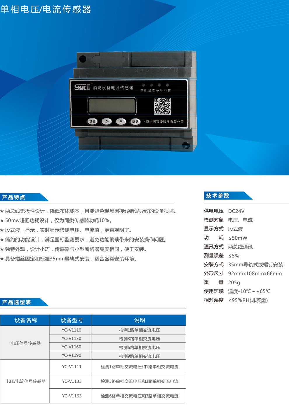> 單相電壓/電流傳感器